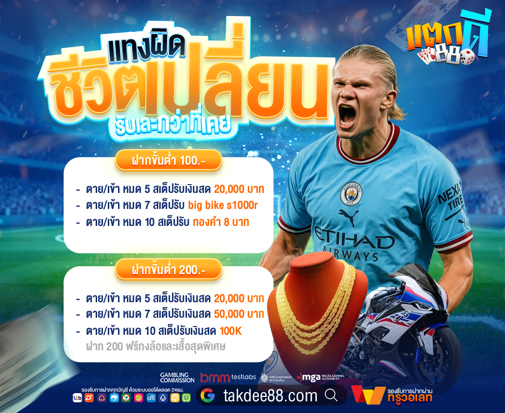 สำหรับผู้ที่สนใจเริ่มต้นเล่นพนันออนไลน์ takdee88 มีโปรโมชั่นสุดพิเศษมากมายที่จะช่วยเพิ่มโอกาสในการทำกำไร ไม่ว่าจะเป็นโบนัสต้อนรับสมาชิกใหม่ เครดิตฟรี หรือโปรโมชั่นคืนยอดเสีย ที่จะช่วยให้การเล่นพนันของคุณคุ้มค่ามากยิ่งขึ้น