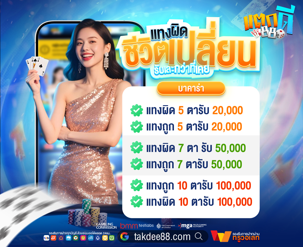 หากคุณกำลังมองหาเว็บพนันออนไลน์ที่ไว้ใจได้ takdee88 คือคำตอบที่ดีที่สุดในปี 2024 ด้วยความมั่นคงทางการเงิน ระบบที่ปลอดภัย และการบริการที่เป็นมิตร ทำให้เว็บไซต์นี้กลายเป็นตัวเลือกอันดับหนึ่งสำหรับผู้ที่ชื่นชอบการเดิมพันออนไลน์ เข้าร่วมเป็นส่วนหนึ่งกับเราวันนี้ และสัมผัสประสบการณ์การเดิมพันที่เหนือระดับได้ที่ takdee88
